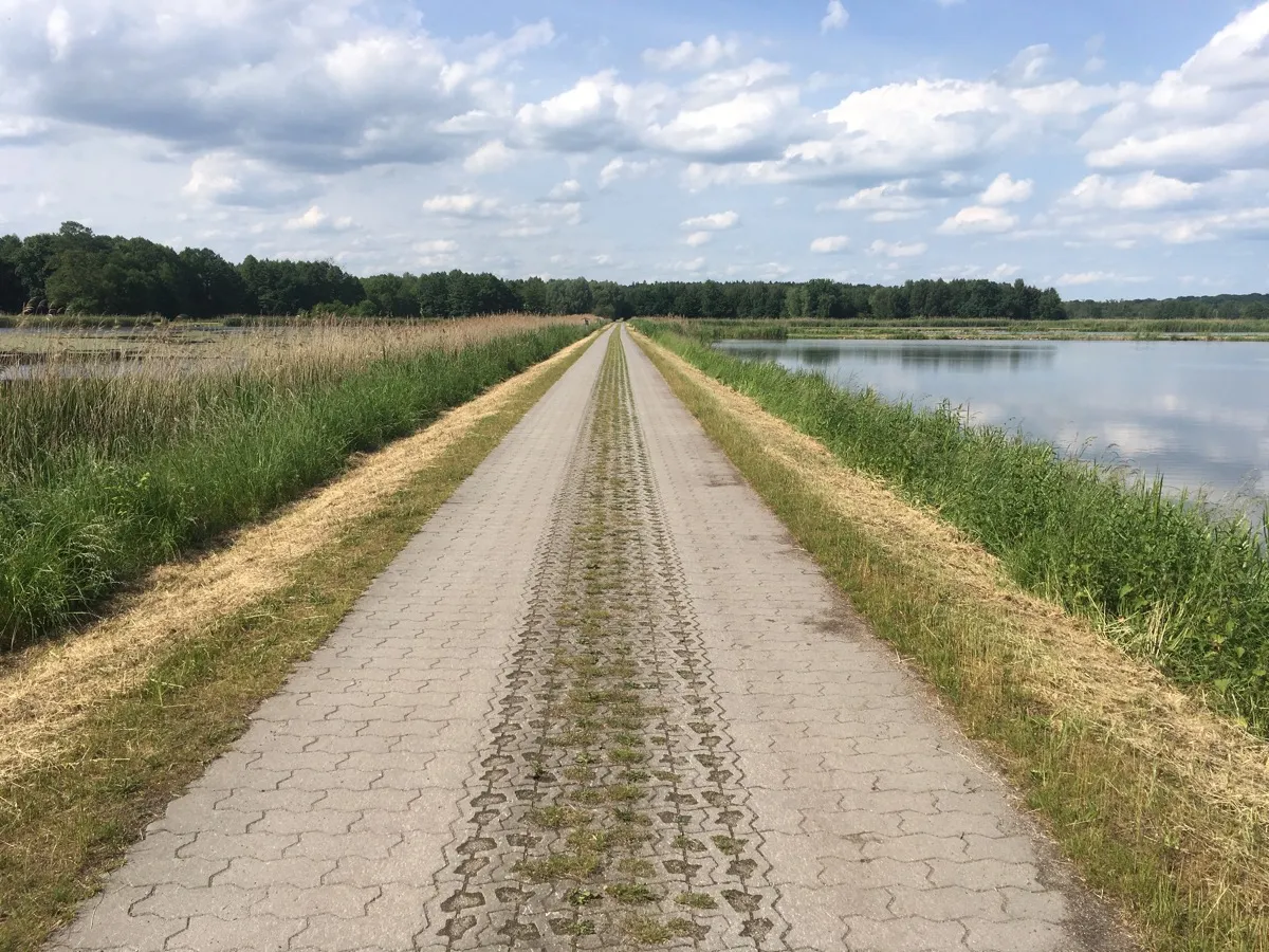 Richtung Angermünde nehme ich nicht den direkten Weg, sondern schwenke auf eine Strecke zwischen den Fischteichen ein, durch die ein Weg führt: