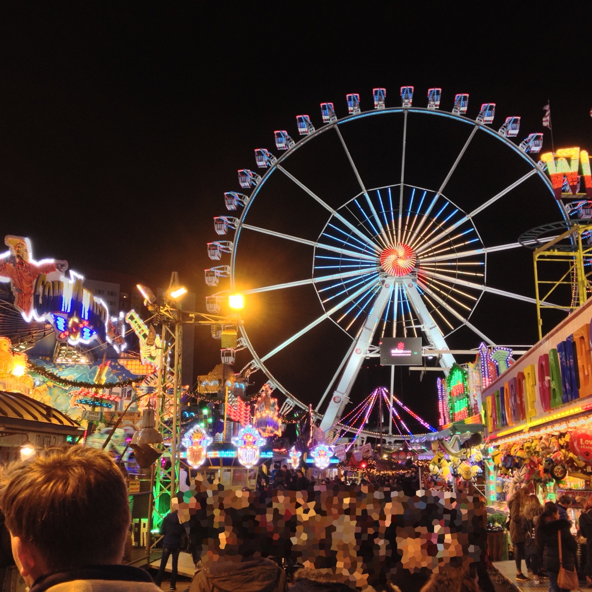 Dieses Jahr habe ich es wieder geschafft, zum Weihnachtsrummel an der Jannowitzbrücke zu fahren. Eine neue Kollegin begleitete mich und da sie aus der Schweiz kommt ist das besonders putzig: Rummel heißt dort Chilbi. Und Achterbahn Achtibahn. Von letzteren gibt es mehrere: Die klassische Wilde Maus und eine Indoorachterbahn mit sich drehenden Gondeln. Viel brauche ich darüber nicht schreiben, denn diekadda hat das schon ganz wunderbar nebenan erledigt.